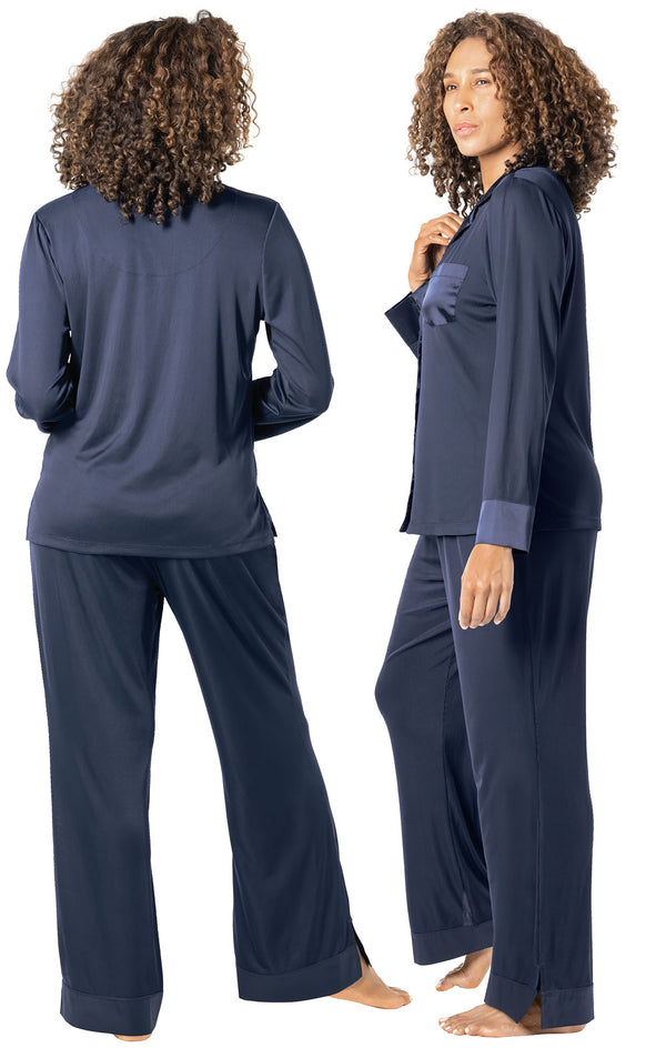 Something cozy? Something seductive? What luck, the Ribbed Luxe Satin Button-Front Pajama by Pajamagram is it. Made of a shiny knit, 2X2 ribbed material, this two-piece set is magnificently designed to move and stretch with the body. Featuring a buttoned, long-sleeve top paired with relaxed fit, full-length pants, these pajamas get even better with smooth satin on the notched collar, lapel, breast pocket, cuffs, and drawstring. Say yes to staying in bed all day, slip into this set.
